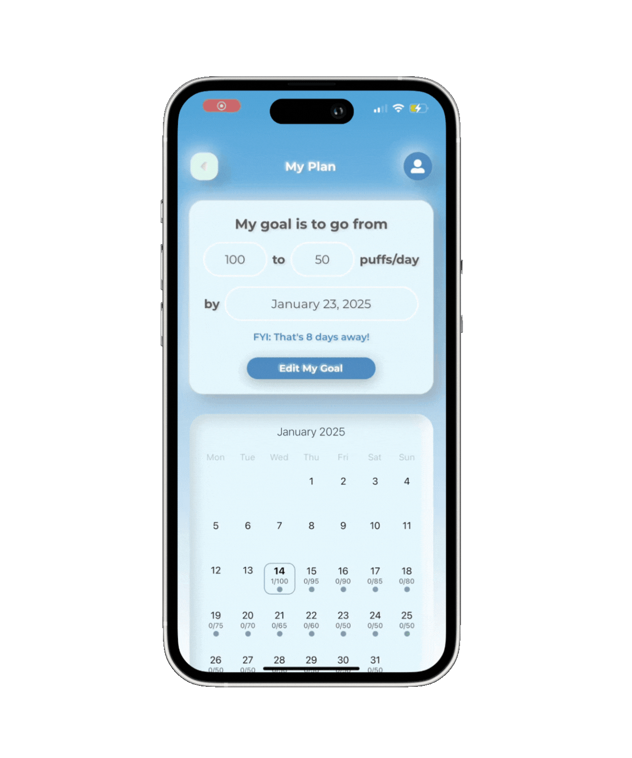 Goal Setting: Define your daily limits and create a personalized plan to taper or control usage over time.